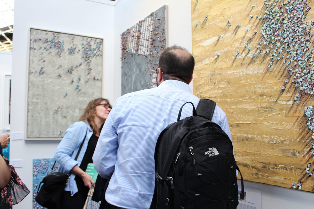 Surviladze’s booth had traffic at a stand still – captivating audiences with the play between dimension and perspective in his paintings. Each piece was awe-inspiring as you realise that not all shadows are as two-dimensional as they may seem. An incredibly lively view of different crowds. @merabsurviladze