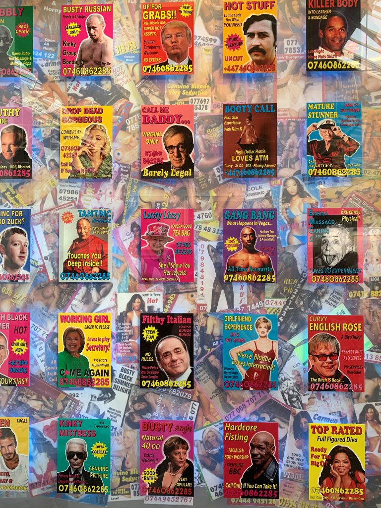 ‘Those We Love and Loathe’ is a satirical social commentary piece displaying the famous and the infamous in a comical telephone box advertisement style. You won’t leave until you’ve taken in every single one, and you may walk away feeling a little bit guilty you laughed. I never thought I would see Mother Teresa advertised as ‘Naughty Teresa’, captioned as ‘Very Flirty’ with a number to call on her ‘Heavenly Services’. Cue guilty lol.  @taliagolchin