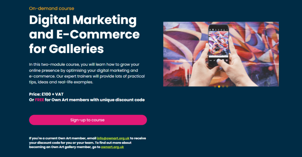 Ordinarily priced at £100 + VAT, Own Art members will receive an exclusive 100% discount to access the course for FREE. Use the code ‘OWNARTLEARNERS’ to access your 100% discount.